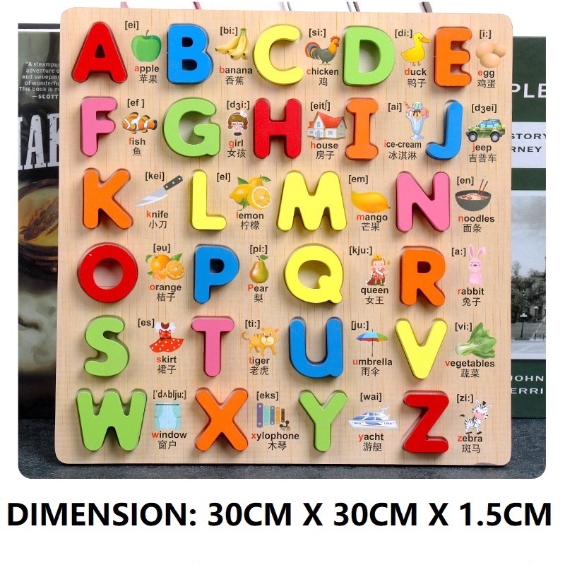 Wooden Puzzle ABC Alphabet 123 Early Educational Baby Learning Board Montessori Toys Baby Mainan Pendidikan Bayi