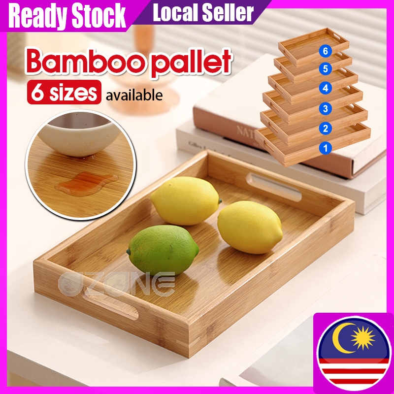 Wooden Tea Breakfast Serving Trays Rectangular Bamboo Handmade Serving Tray with Handles Fruit Plate Wood Platter