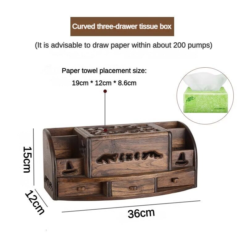 Wooden Tissue Box Cover With Drawer Remote Control Storage Home Office Desktop Storage Tissue Box