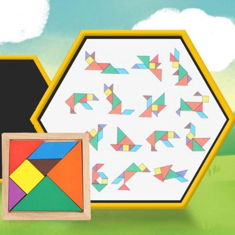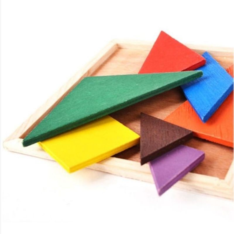 Wooden Triangle Jigsaw Puzzle 7 Piece Square Solid Wood Brain Teaser Wooden Puzzle