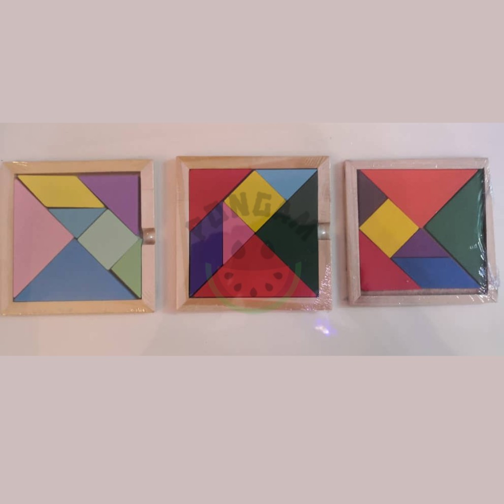 Wooden Triangle Jigsaw Puzzle Square Solid Wood 7 pieces for Mental Developmental Toy Montessori