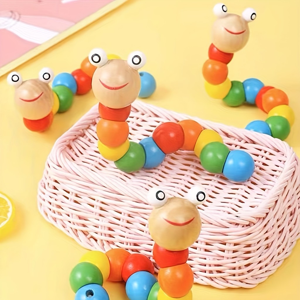 Wooden Variety Colorful Twisted Worm Caterpillar Beads Quantity Color Cognition Educational Toys