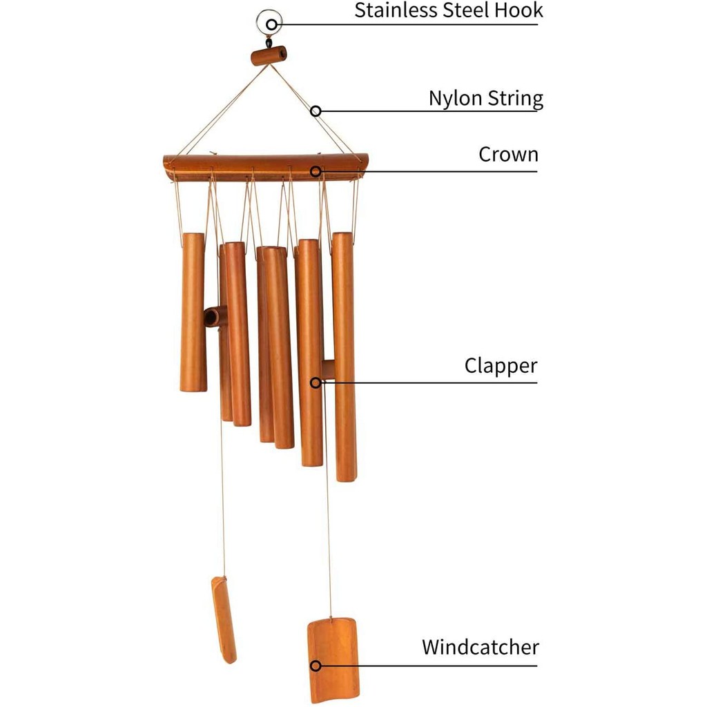 Wooden Wind Chimes Outdoor, Wind Chimes with Amazing Deep Tone for Garden, Patio, Home or Outside Decor, Handmade Birthday Gifts, Natural Beautiful Sound