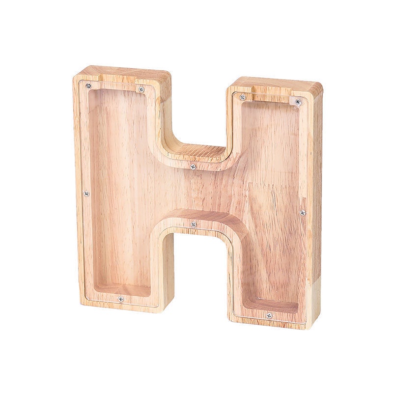 Wooden piggy bank creative style money box/wooden piggy bank/coin bank/wooden transparent english alphabet piggy bank