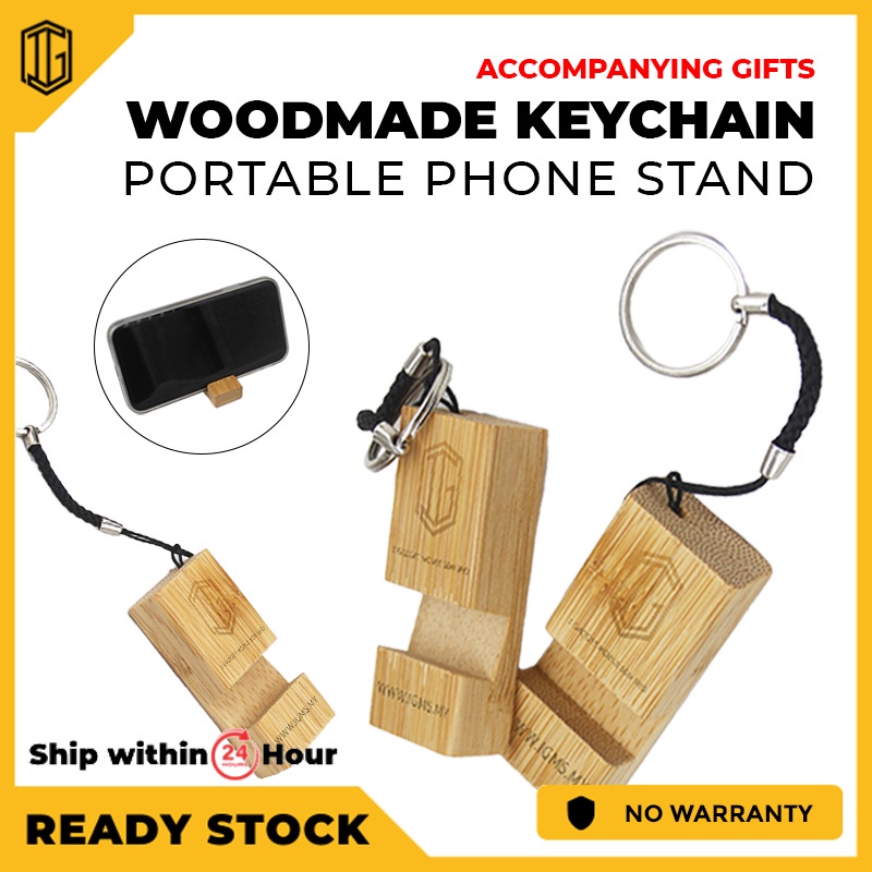 Woodmade Keychain Portable Phone Stand Accompanying Gifts Handicrafts Universal IOS Android Key Holder
