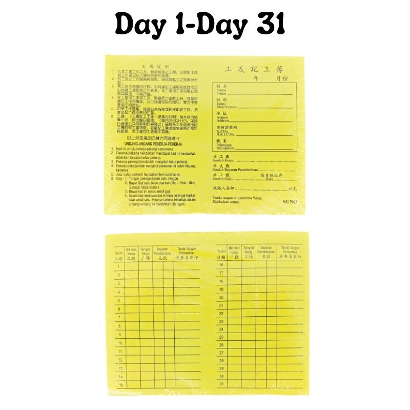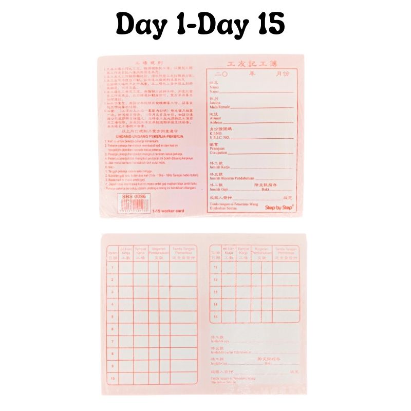 Worker Card/Time Card/Worker Attendance Card/Worker Record Card(Day1-31/Day1-15/Day16-31)