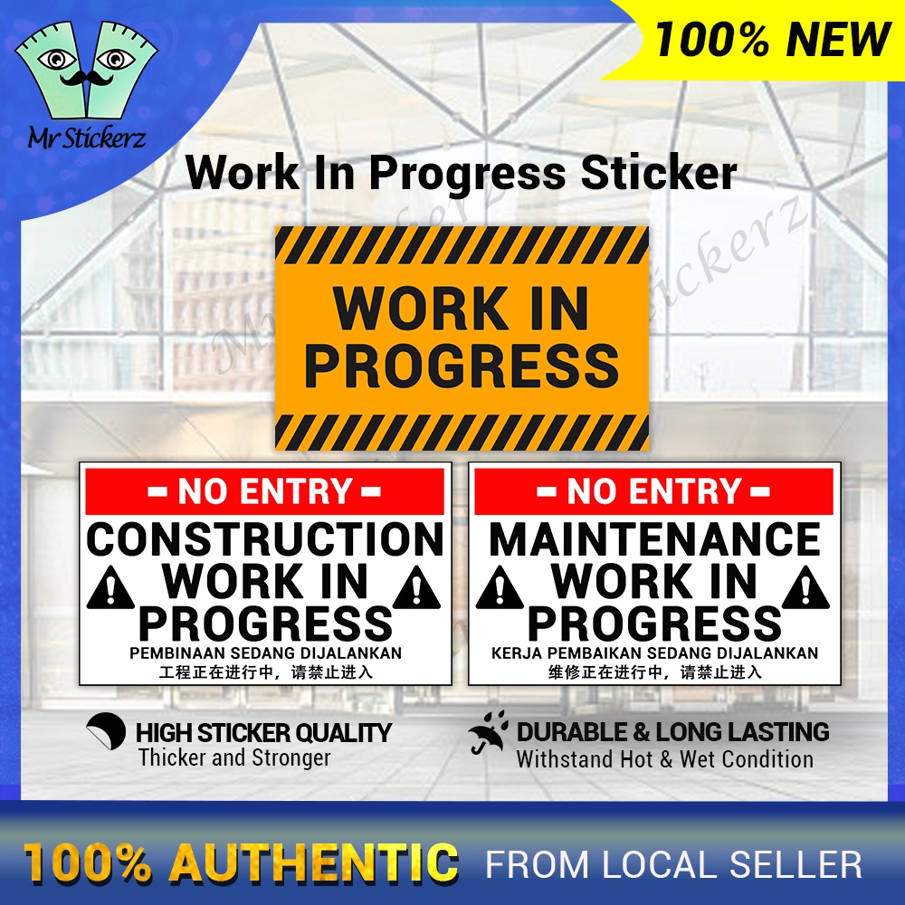 Working In Process Sticker Normal/ Construction/ Maintenance High Sticker Quality Long Lasting