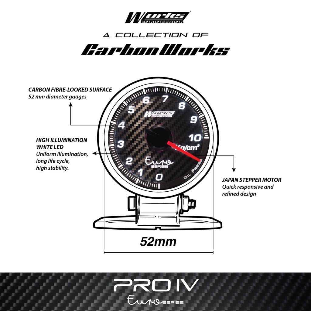 Works Engineering Pro IV Carbonetic Series Gauge Meter 52mm (Original)