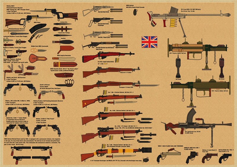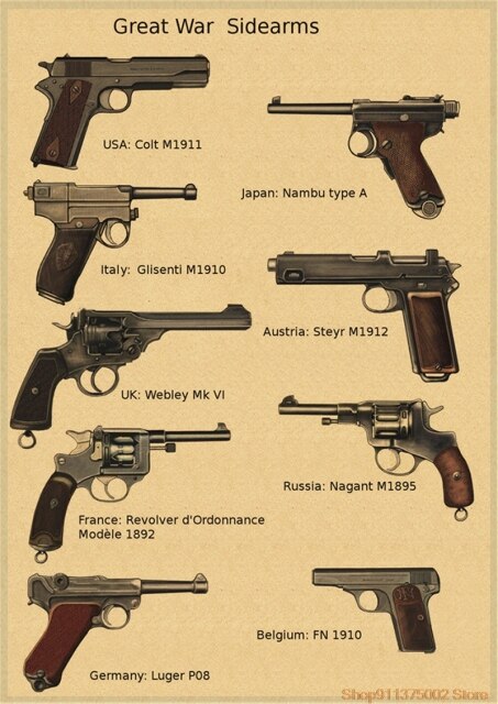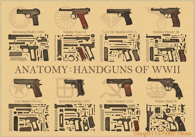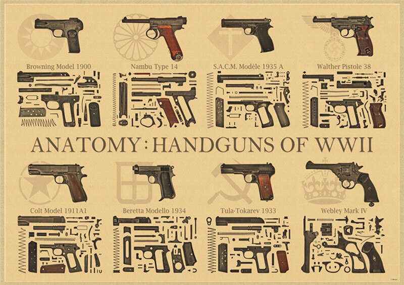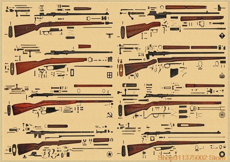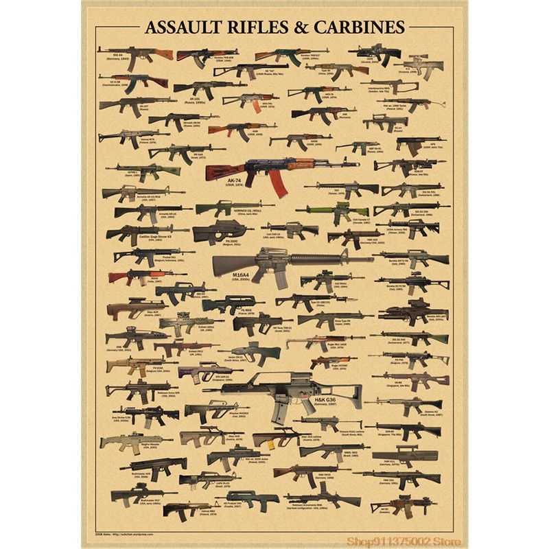 World Famous Gun Posters Military Fans Vintage Poster Kraft Paper Decorative Painting Paper Posters wall posters