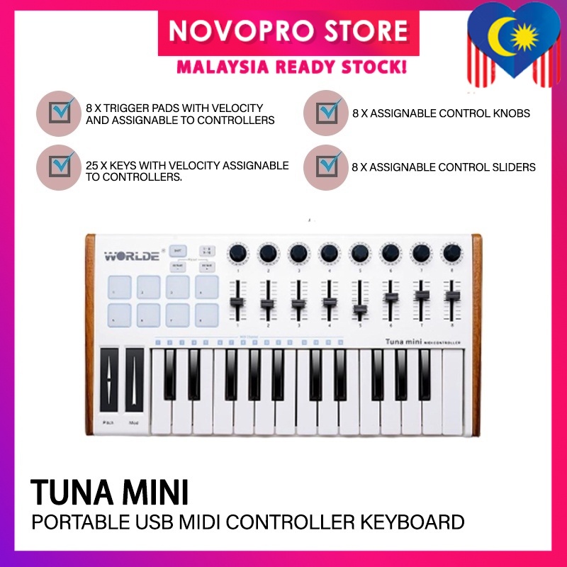 Worlde TUNA MINI Portable USB MIDI Controller Keyboard With Drum Pad for DAW Controller (Malaysia Ready Stock)