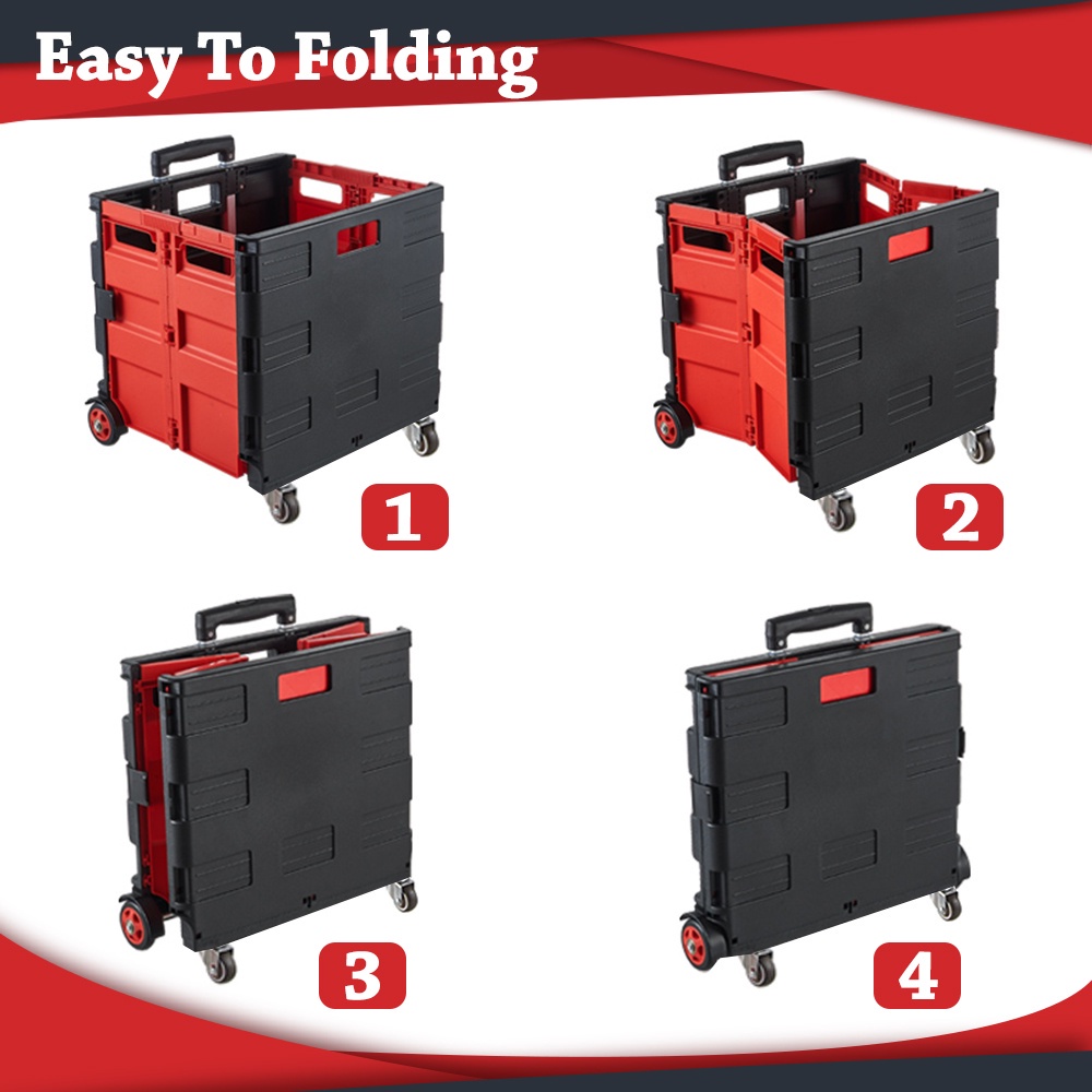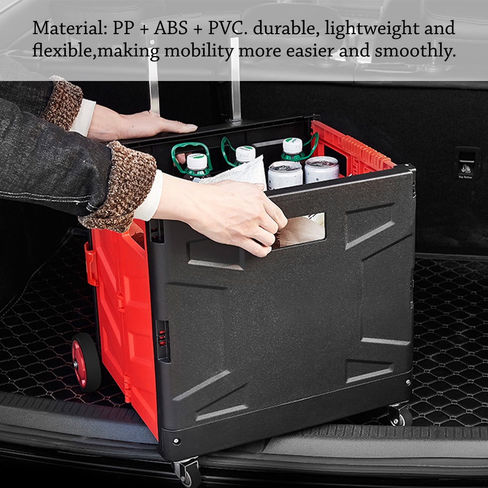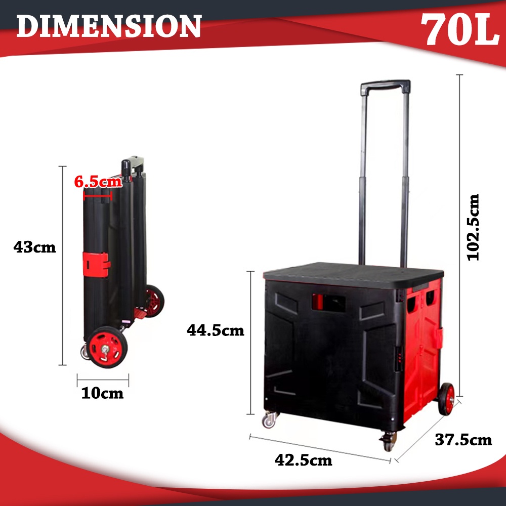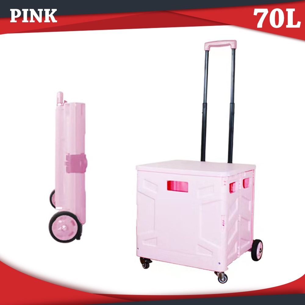 Worthbuy 75L Foldable Shopping Cart Troli Barang Trolley Cart Box Trolley Basket Trolley Wheel Storage Box Troli Lipat