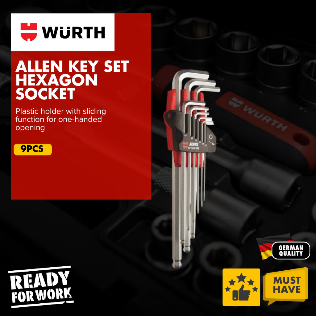Wurth Allen Key Set Hexagon Socket | 9 PCS | Set Kunci Allen Soket Heksagon | 内六角扳手套装