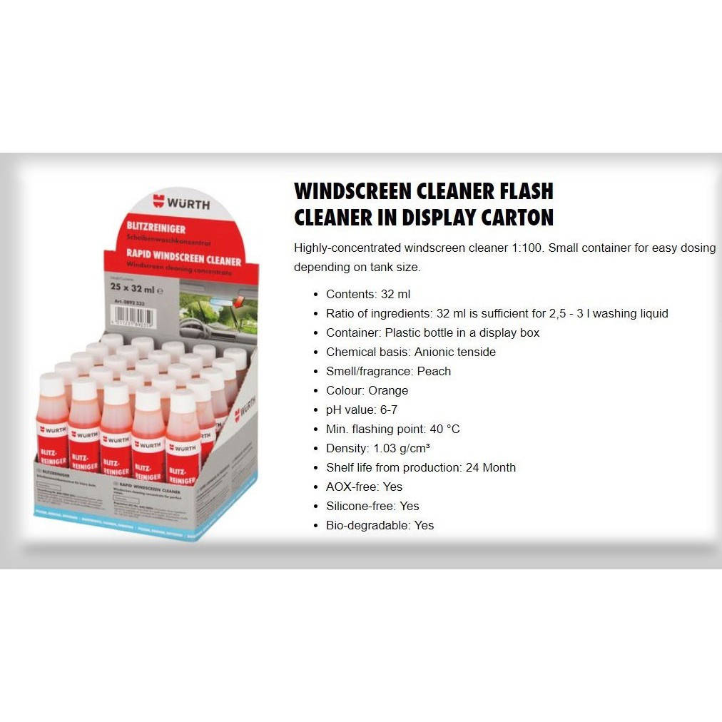 Wurth Rapid Windscreen Cleaner Windshield Cleaner Flash Cleaner Wiper Tank Shampoo - 32ML