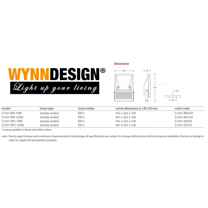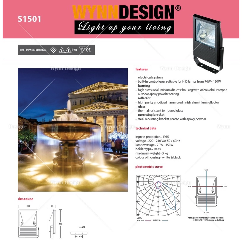 Wynn Design [NIKKON Flood Light] Metal Halide IP65 Commercial Floodlight Outdoor Spotlight with Tempered Glass (NON-LED)