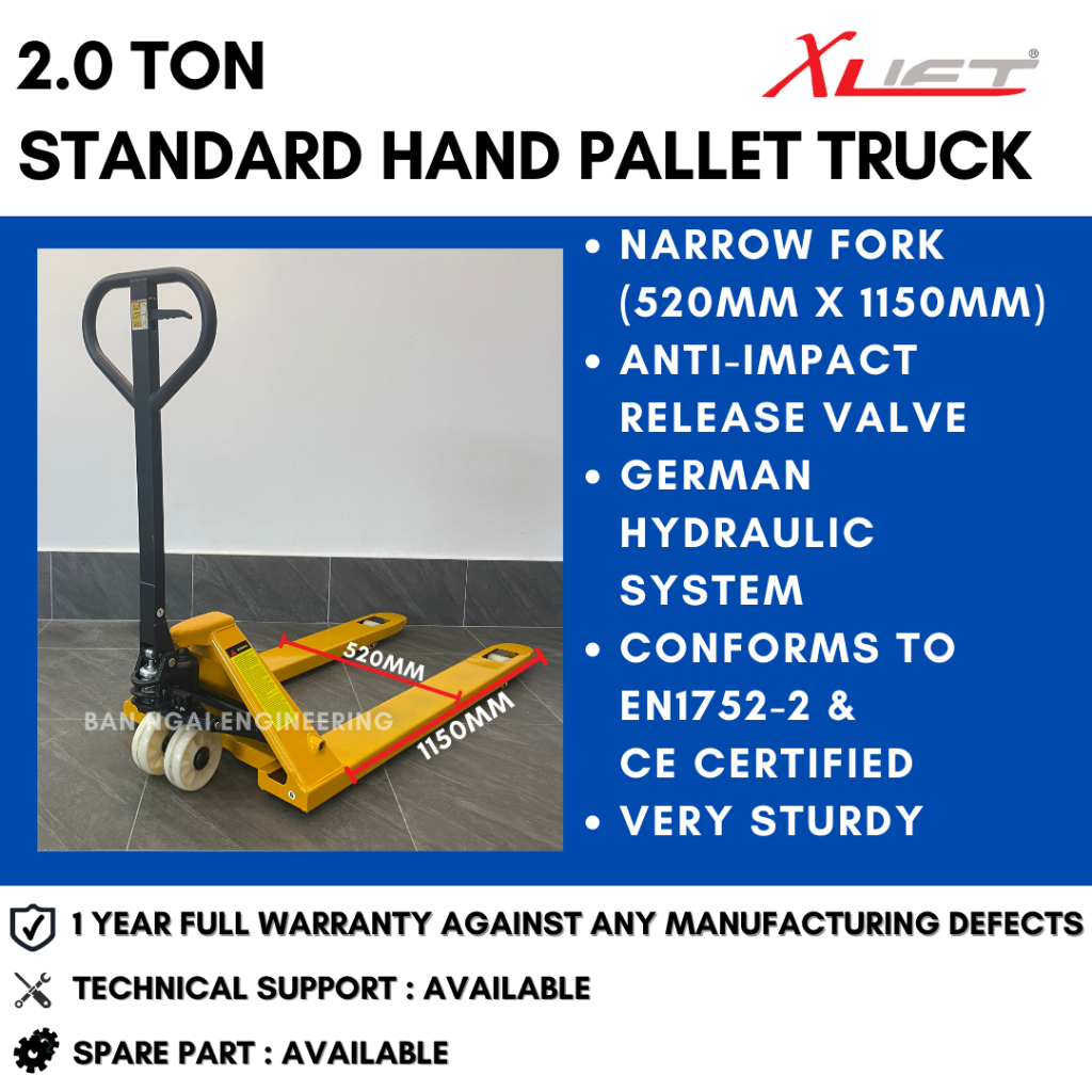 X-LIFT 2.0 Ton Hand Pallet Truck Narrow Fork (520mm x 1150mm) Manual Pallet Jack Hand Jack | 1 Year FULL Warranty