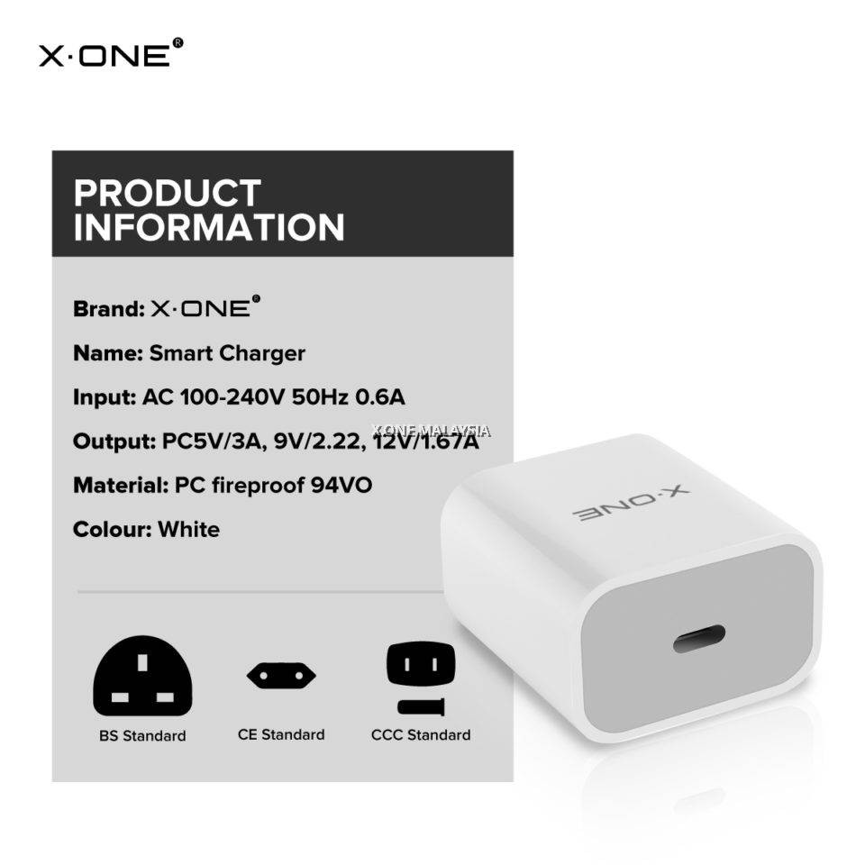 X-One Power Charger Solo USB-C With Power Delivery Fast Charge Adapter