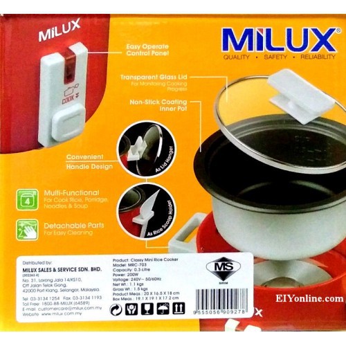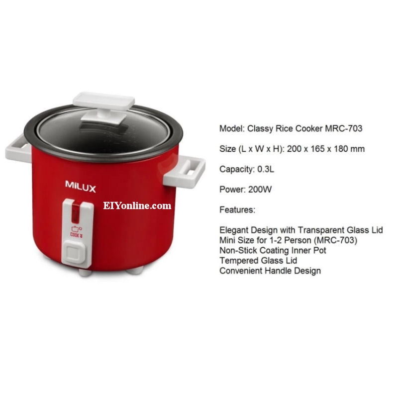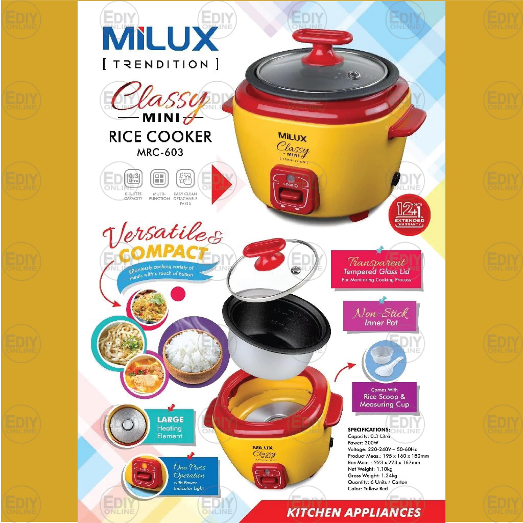 【SIRIM 3 PIN】 MILUX MRC703 MRC-703 / MRC603 MRC-603 0.3L CLASSY ELECTRIC MINI RICE COOKER PERIUK NASI