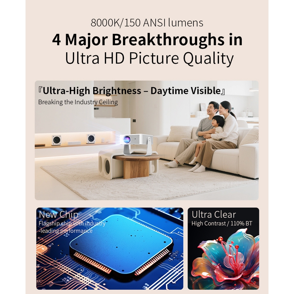 X3 Mini Projector with WiFi and Bluetooth Native 1080P Portable Outdoor Home Projector Support for HDMI/USB/Phone/Laptop
