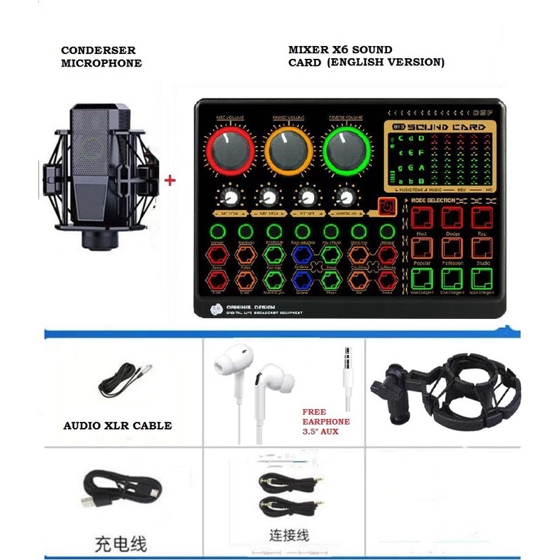 X6 Mobile Live Streaming Sound Card Suit Mixer Mobile Phone Computer External Sound Card Bluetooth