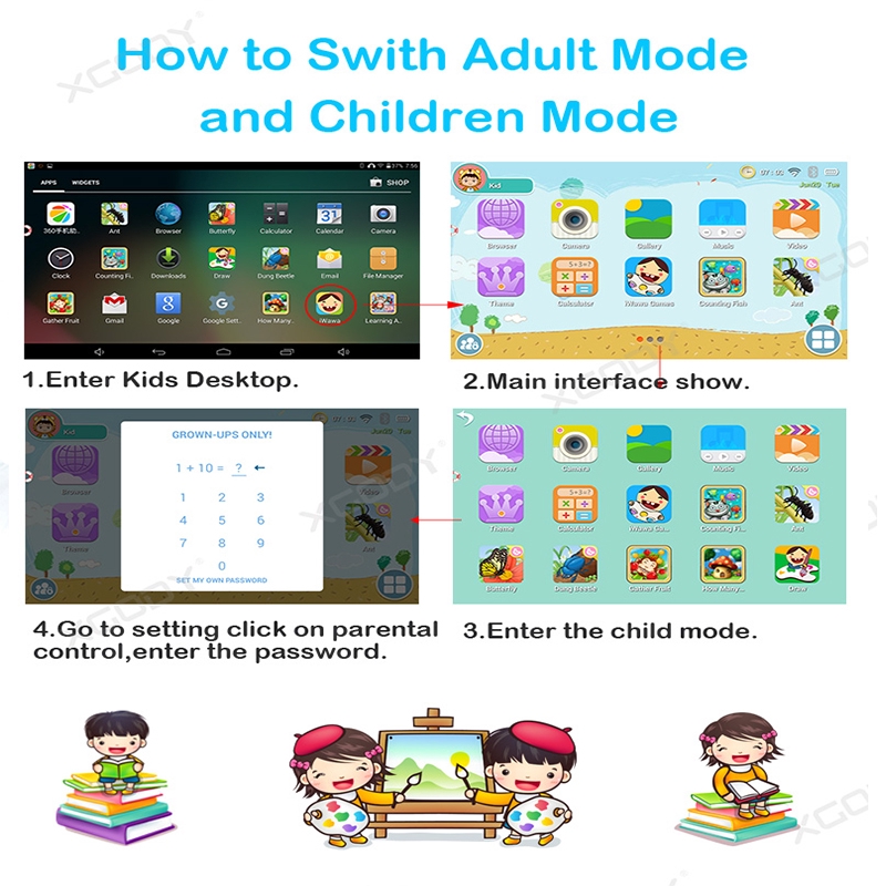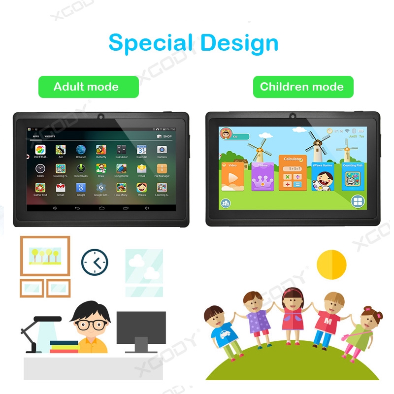 XGODY T702 7Inch Kids Tablet PC Birthday Gift for Kids 3+32GB Android 12 Dual Camera Youtube Online Class Support