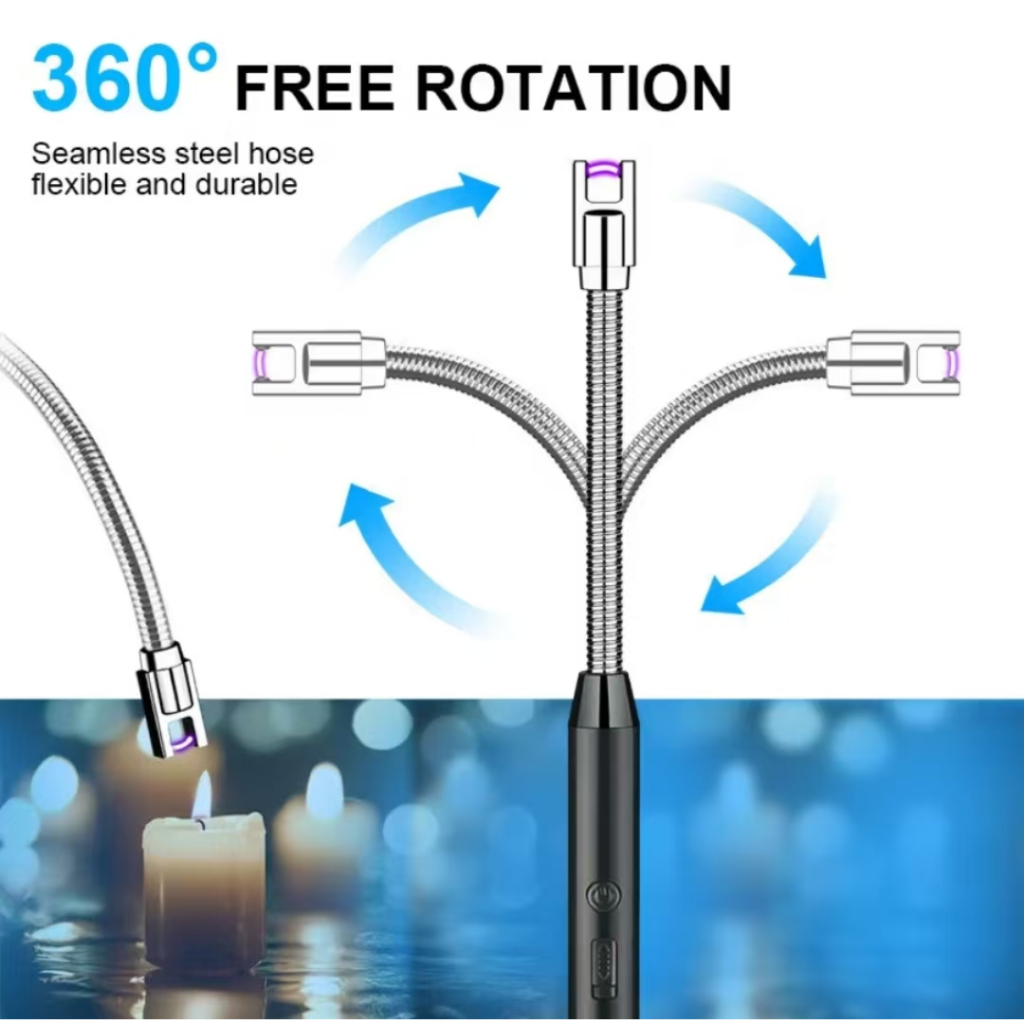 XH-702B Electric Arc Lighter USB Rechargeable 360 Rotation Windproof Atomic Plasma Spark Lighter Candle BBQ Cooking