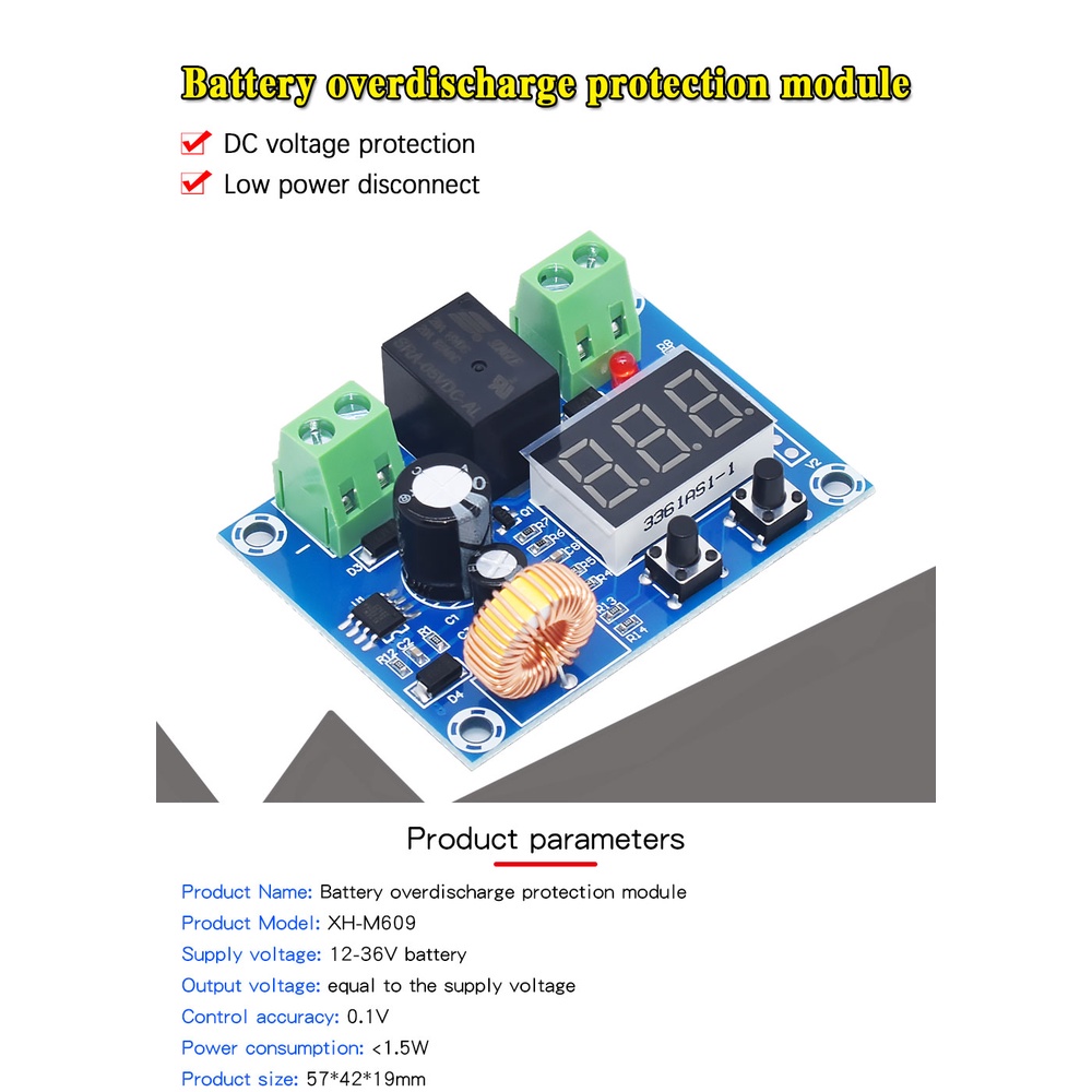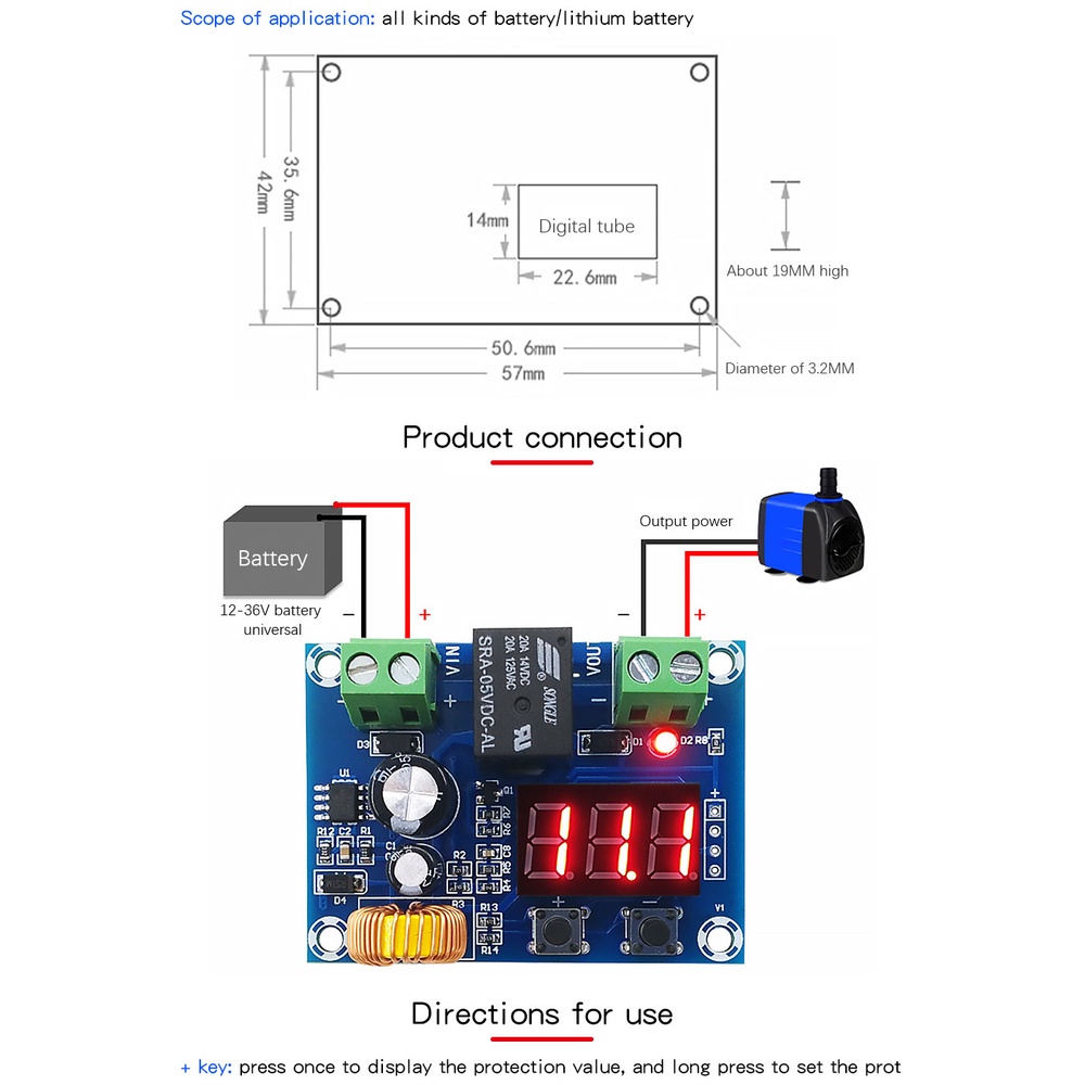 XH-M609/HCW-M635 DC 12V-36V Charger Module Voltage OverDischarge Battery Protection Precise Undervoltage Protection Module Board