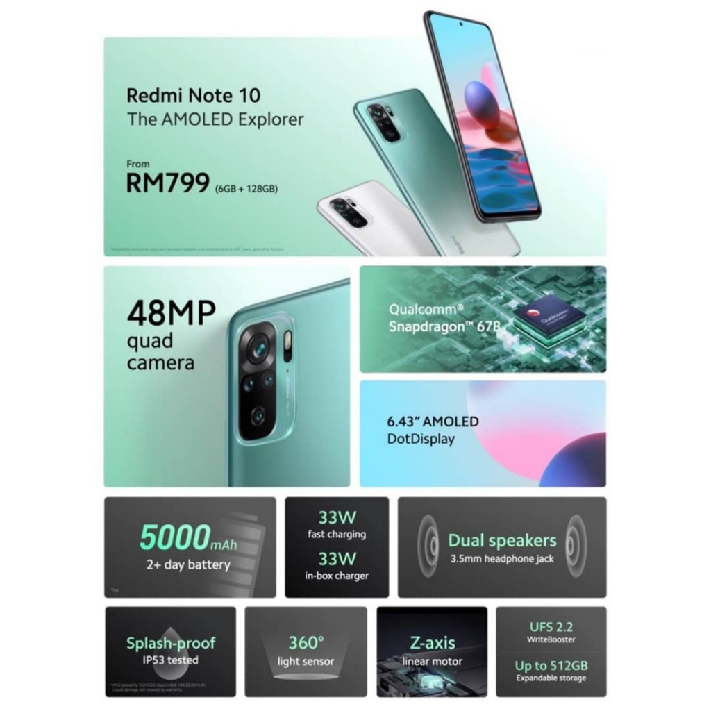 XIAOMI Redmi Note 10 [ 6GB RAM + 128GB ROM/5000mAh ] 6.43" AMOLED DotDisplay (1 Year Warranty By MI Malaysia)