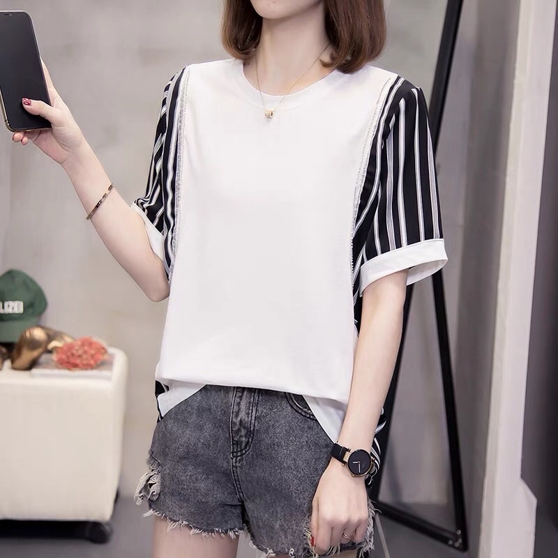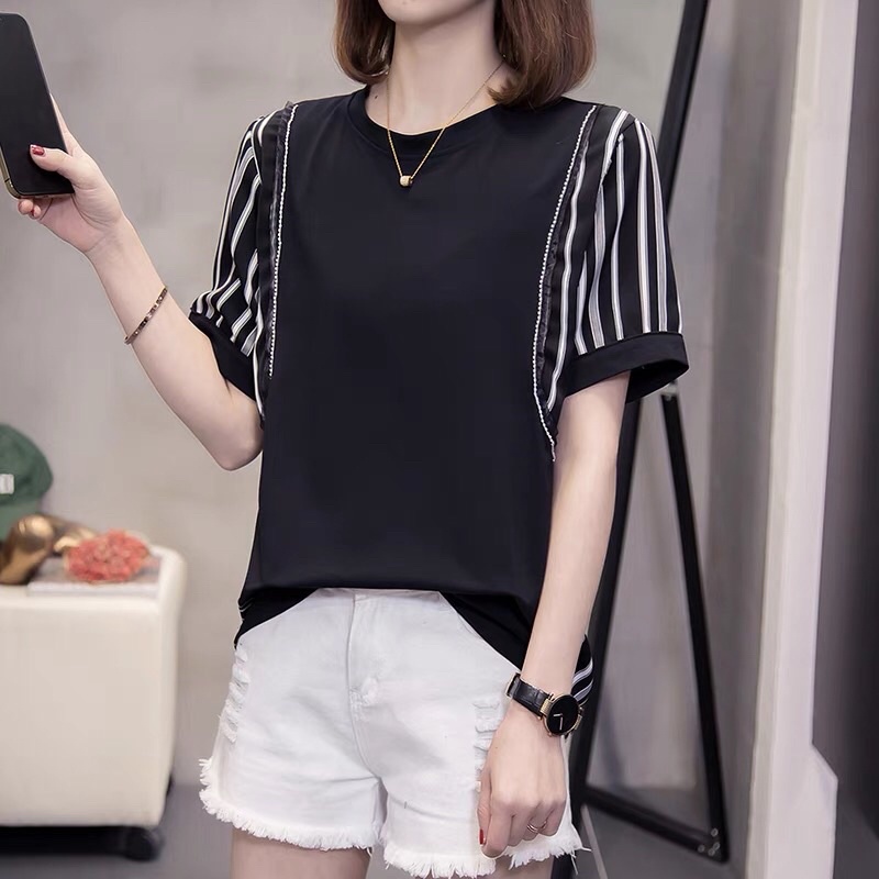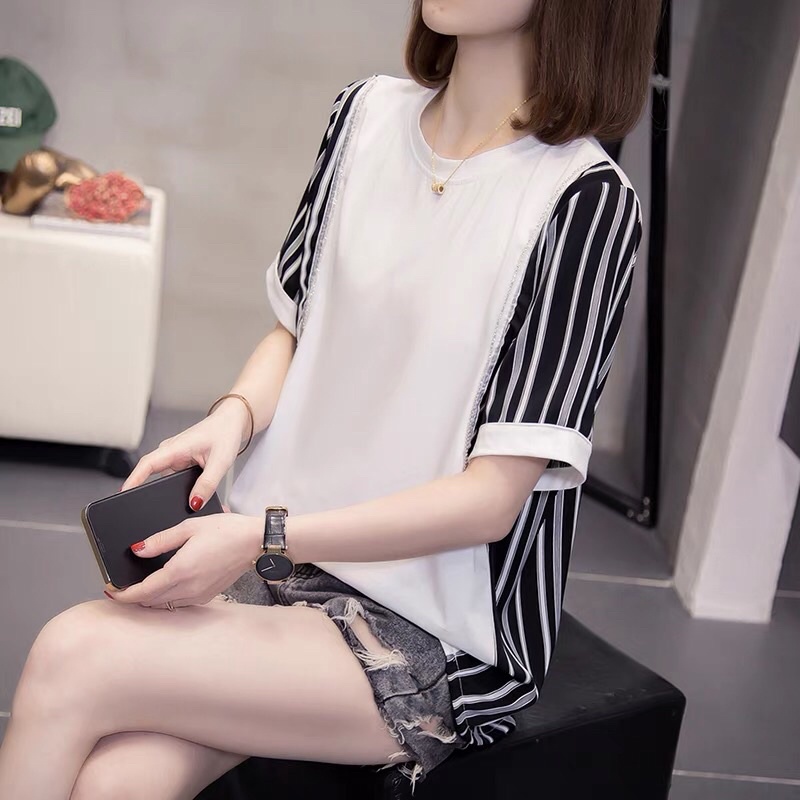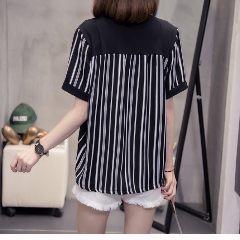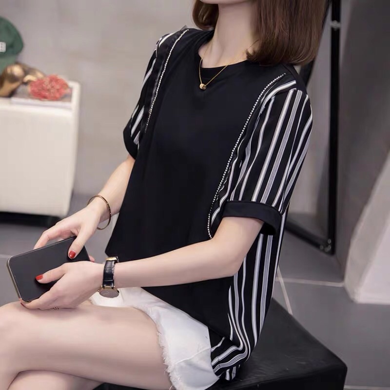 XL-4XL Plus Size Stripped women Casual Working Blouse for Everyday Round beck short Sleeve