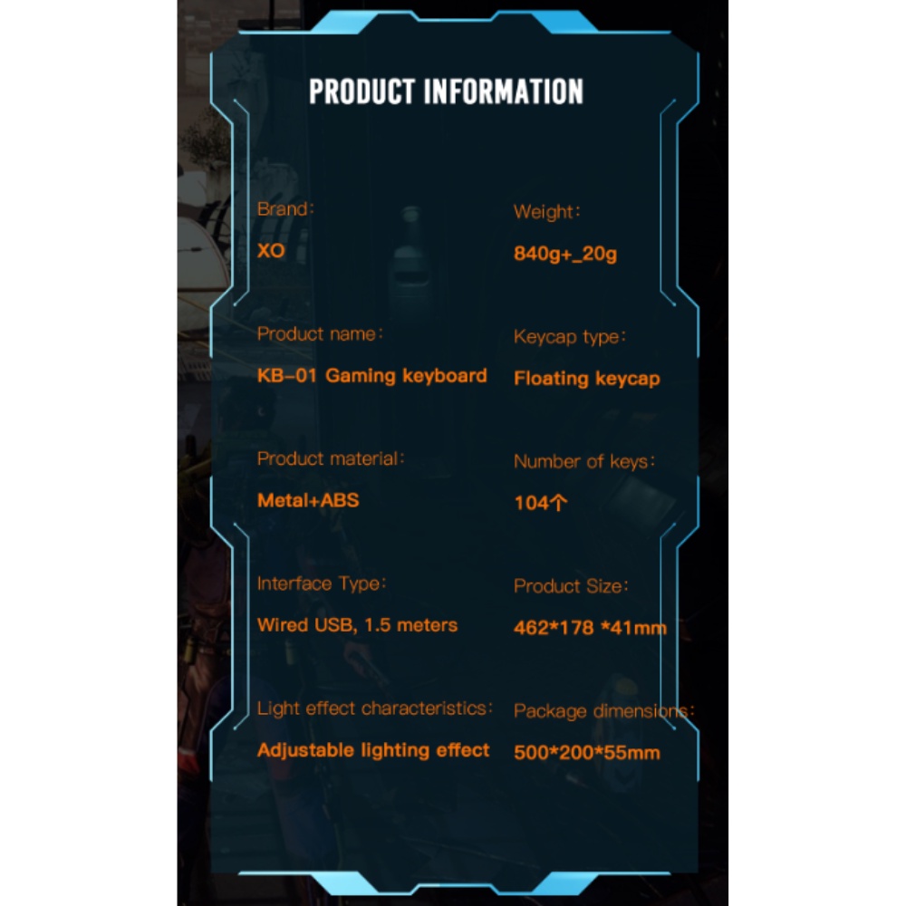 XO KB01 RGB BACKLIT METAL GAMING KEYBOARD