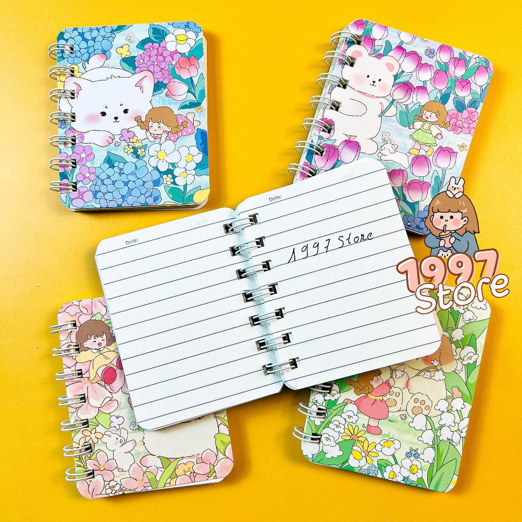 XO Set of 4 Best Friend spring notebooks, pocket-sized mini spring notebook with 80 A7 pages with cute lined cover.