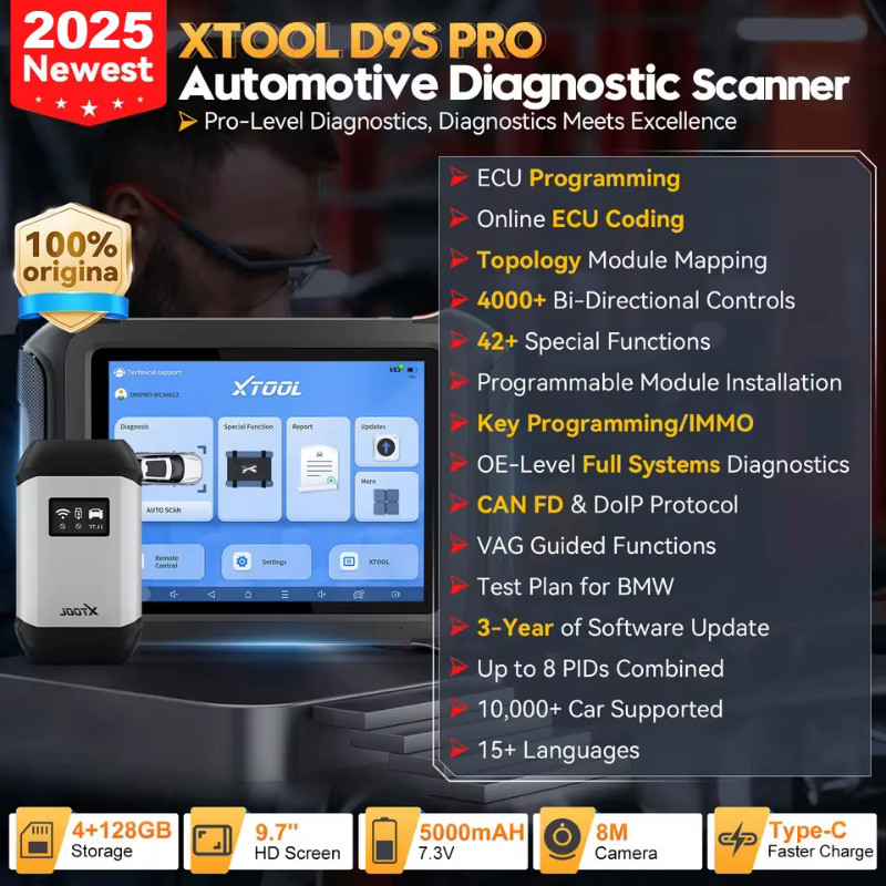 XTOOL D9S PRO Bluetooth Diagnostic Tools Automotive OBD2 Scanner ECU Programming FCA AutoAuth 42 Resets Topology Map DoI