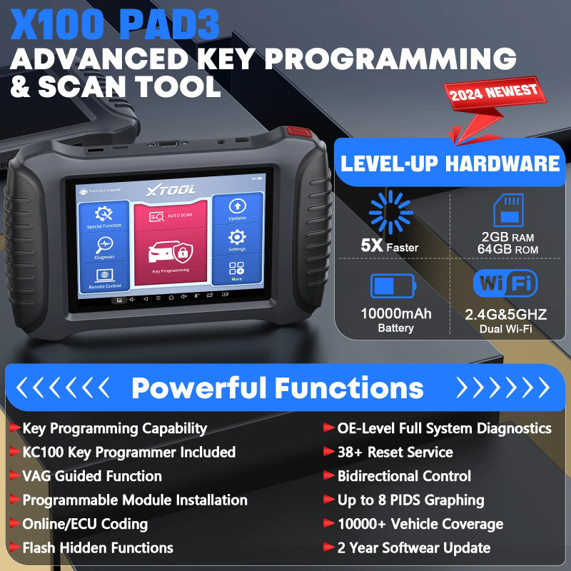 XTOOL X100 PAD3 Elite IMMO Key Programming Tools with KC100 Full System Diagnostic Scanner Active Test 38+ Reset All Key