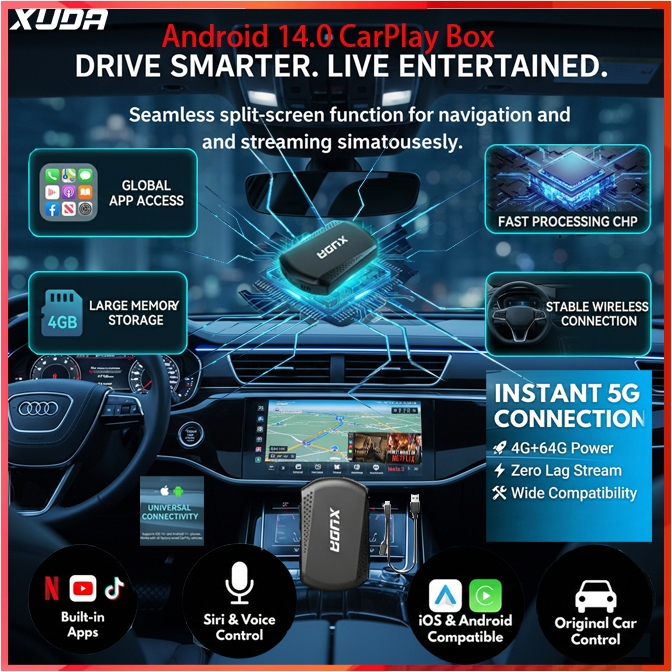 Wireless CarPlay Adapter Support Youtube Netflix New Android 14 Ai Box Universal Plug And Play