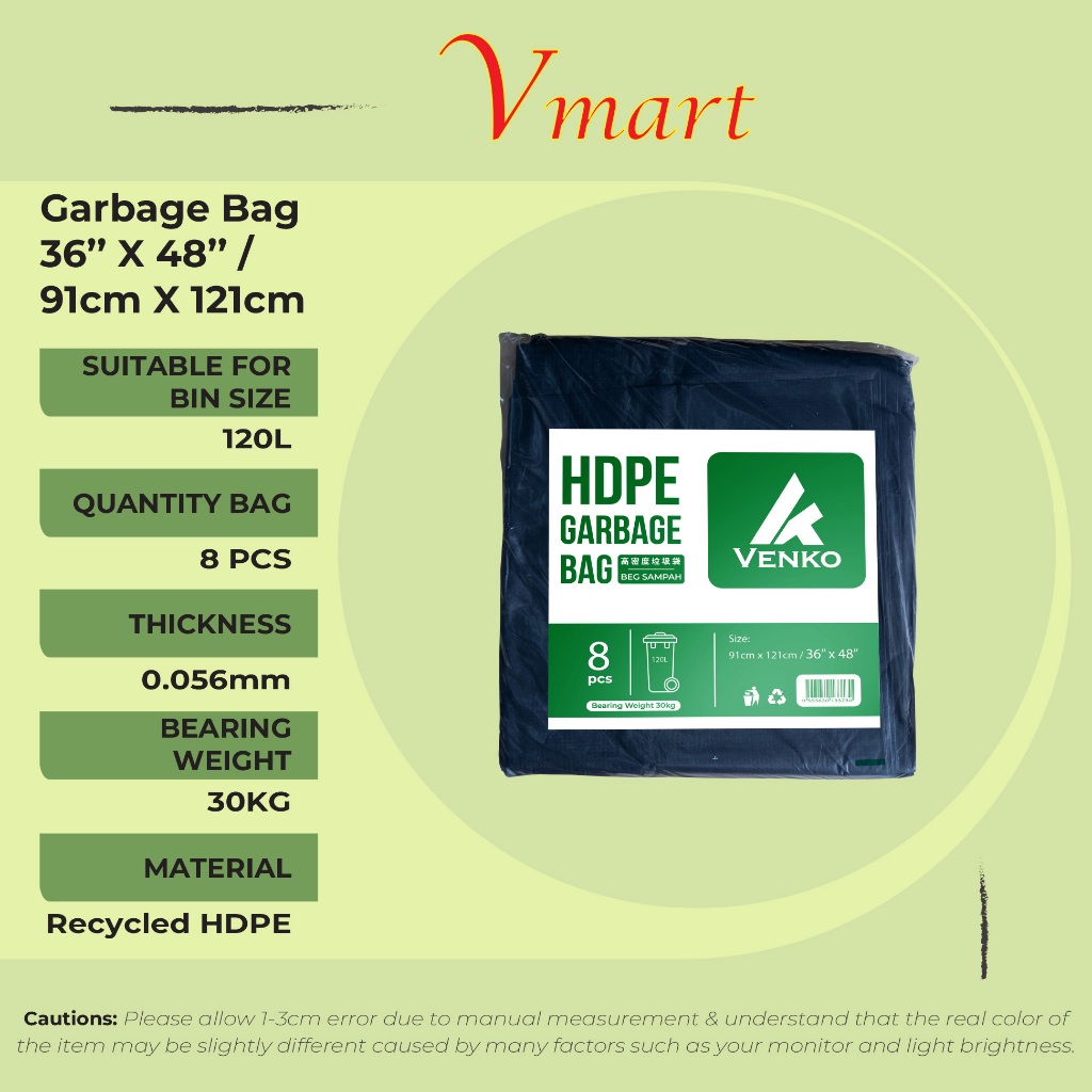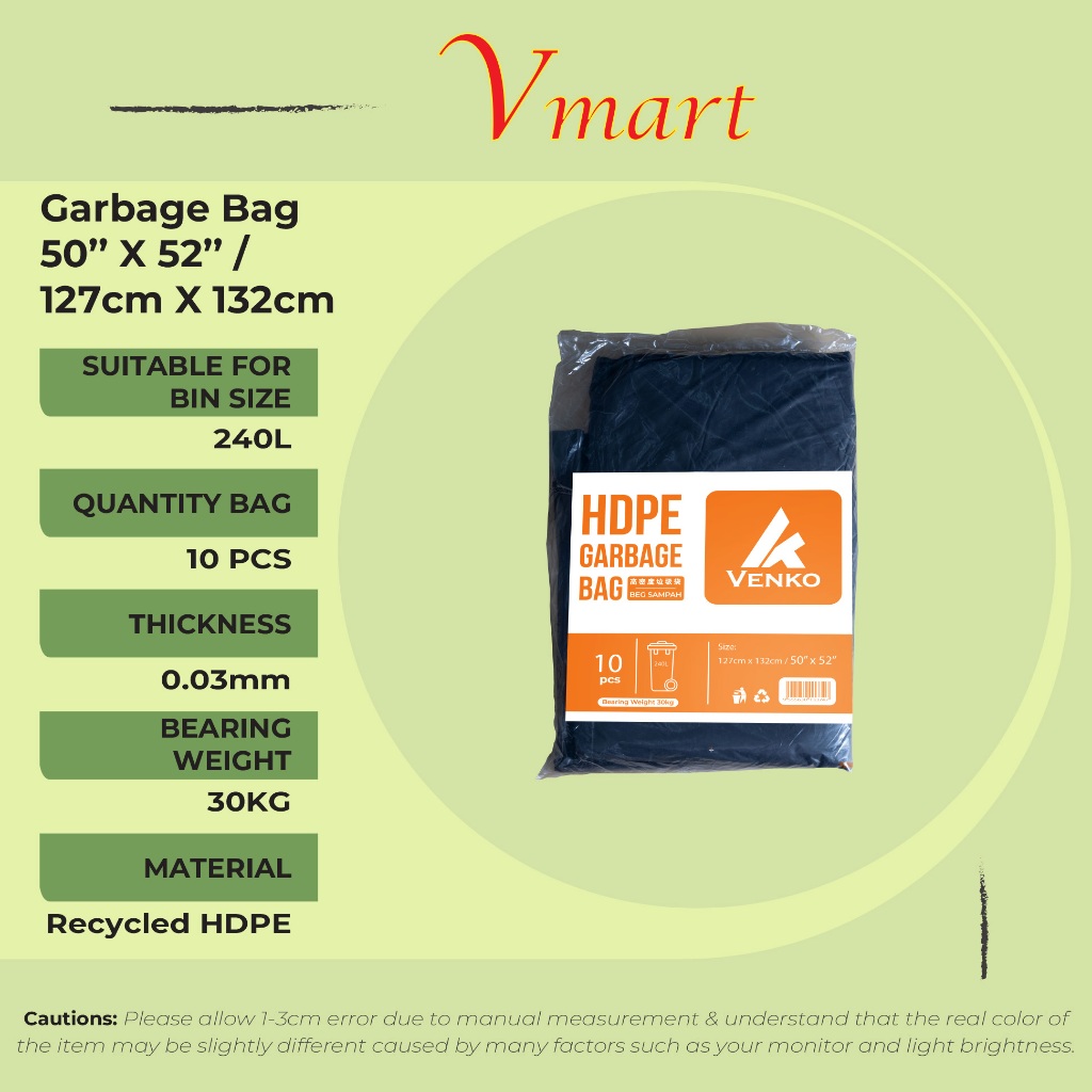 Venko Heavy Duty Garbage Bag (TEBAL) Saiz Besar XL / Beg Plastik Tong Sampah Besar