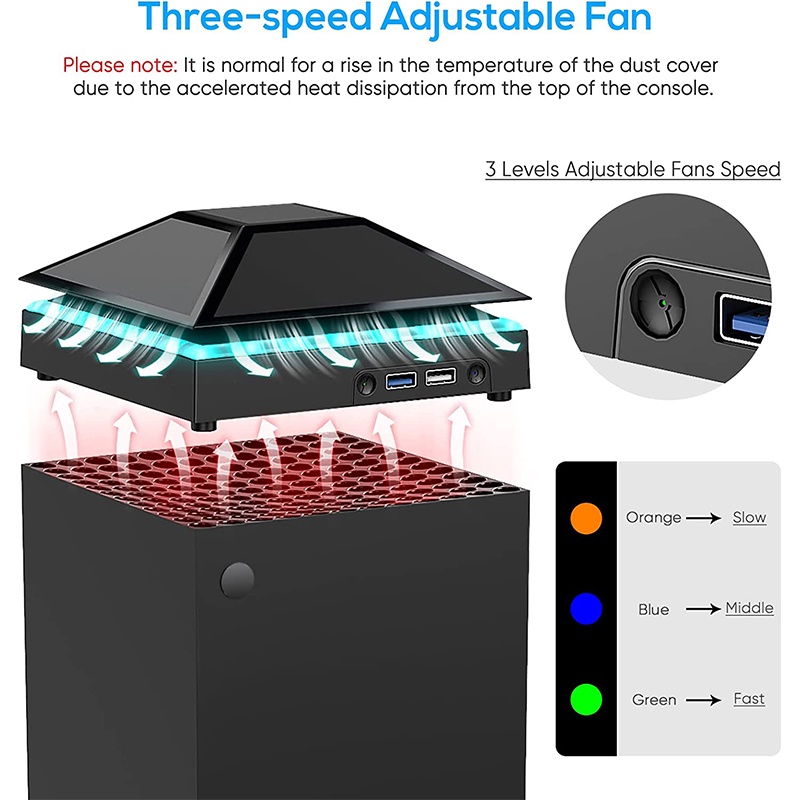 Xbox Series X Cooling Fan,3 Levels Adjustable Speed Cooler Fan System 1800/2000/2200 RPM, Low Noise Top Fan with RGB LED Light, Extra 2 USB Port & Touch Switch