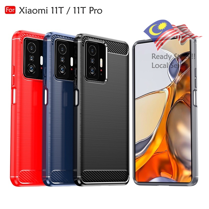 Xiaomi 11T Xiaomi 11T Pro Back Case Cover Carbon Fiber Brushed TPU Silicone Soft Casing Phone Mobile Housing