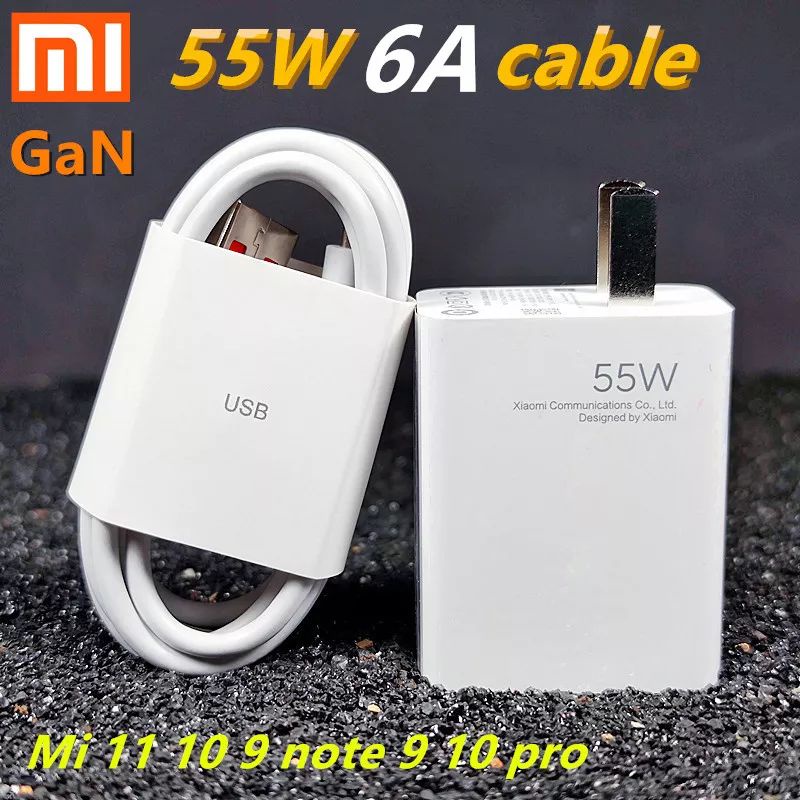 Xiaomi 55W Charger GaN Tech With 6A Type-C USB Cable Support Turbocharge Fast-Charge on Mi 11 Note 10 Prof