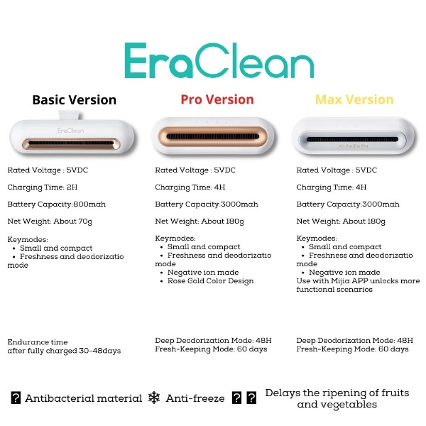 Xiaomi EraClean Refrigerator Deodorizer Fridge Purifier Food Fresh Electronic Odor Eliminator Rechargeable Sterilizer