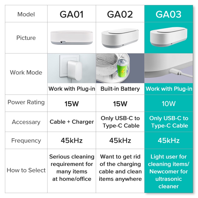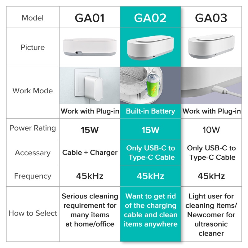 EraClean GA01/GA02/ GA03 Ultrasonic Cleaner Machine 45000Hz High Vibration Glasses