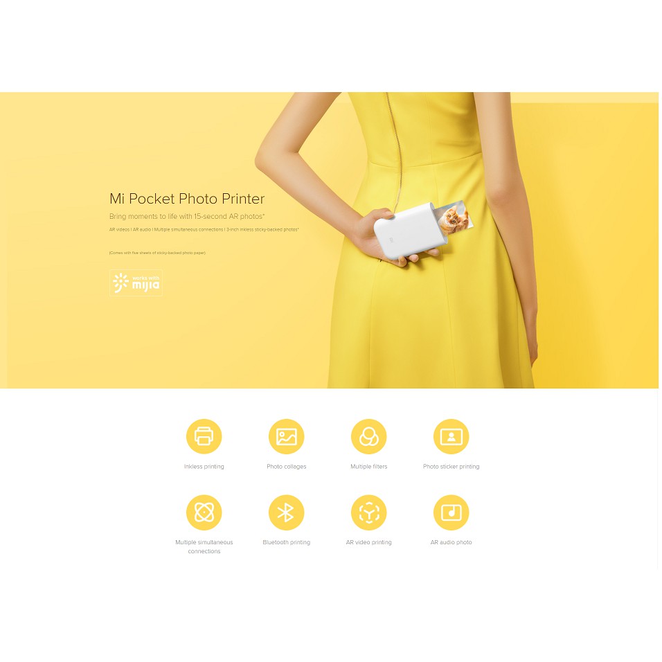 Xiaomi Mi Pocket Photo Printer [AR Printer Portable Photo DIY Picture Printer 500mAh Bluetooth Work with Mijia APP