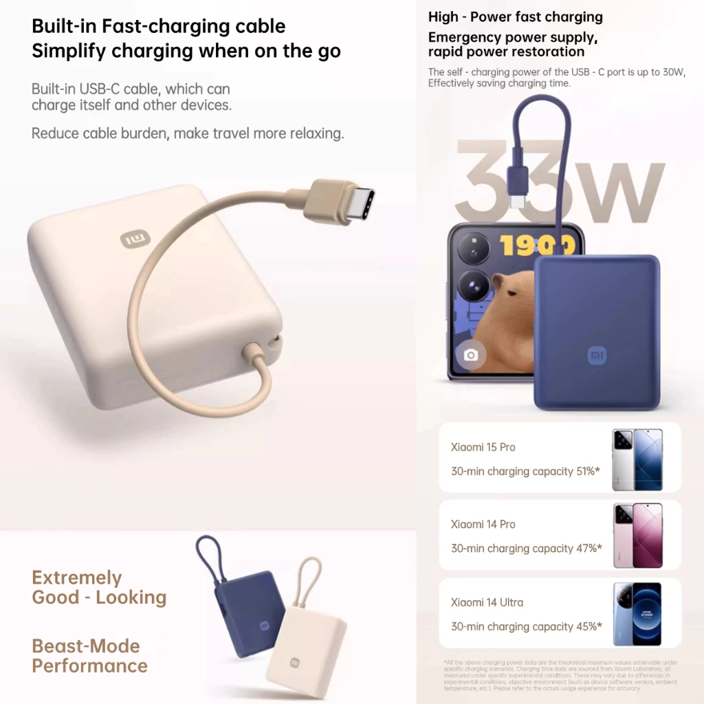 Xiaomi Power Bank 3C Certified 10000mAh 33W (Built-in Cable) Pocket size Fast Charging Powerbank CCC