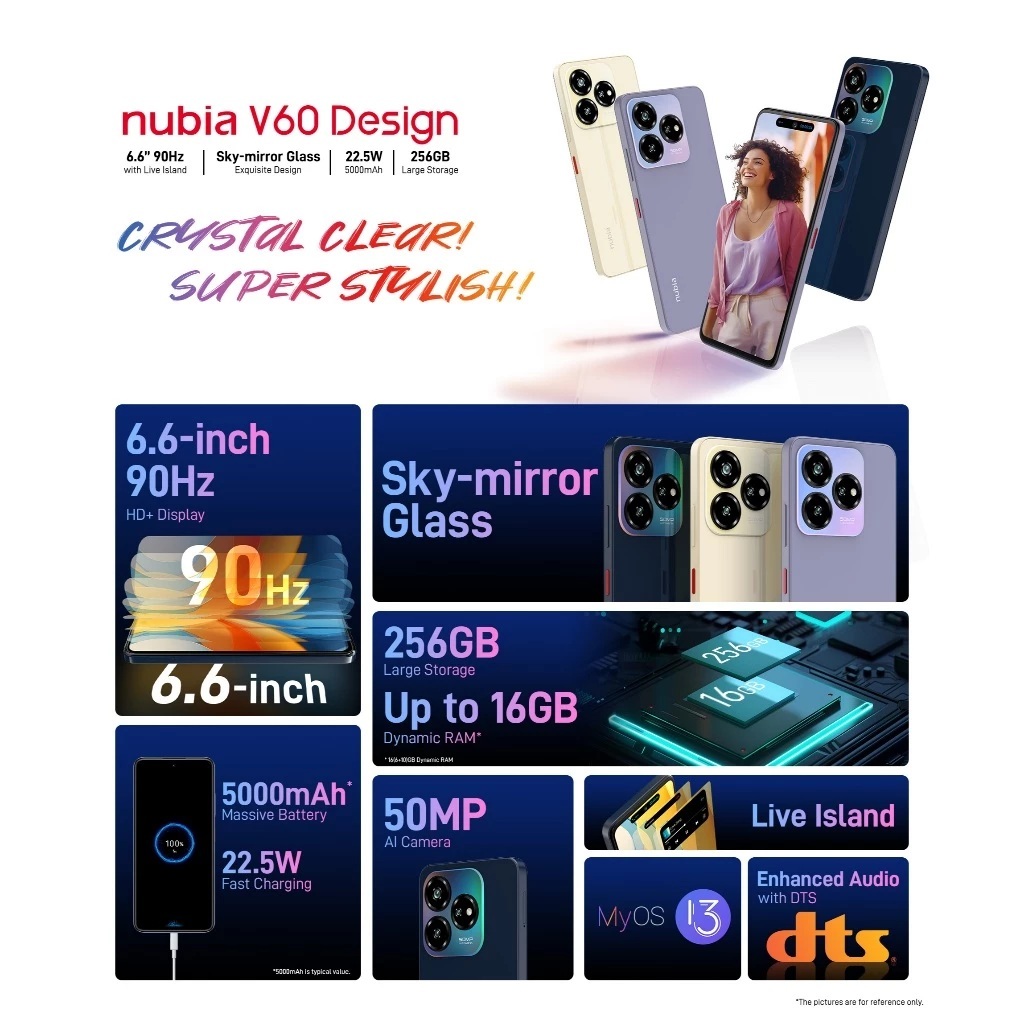 Nubia V60 Design | (6+10)GB+256GB | 6.6" 90Hz display | 50MP AI Camera | 5000mAh Battery