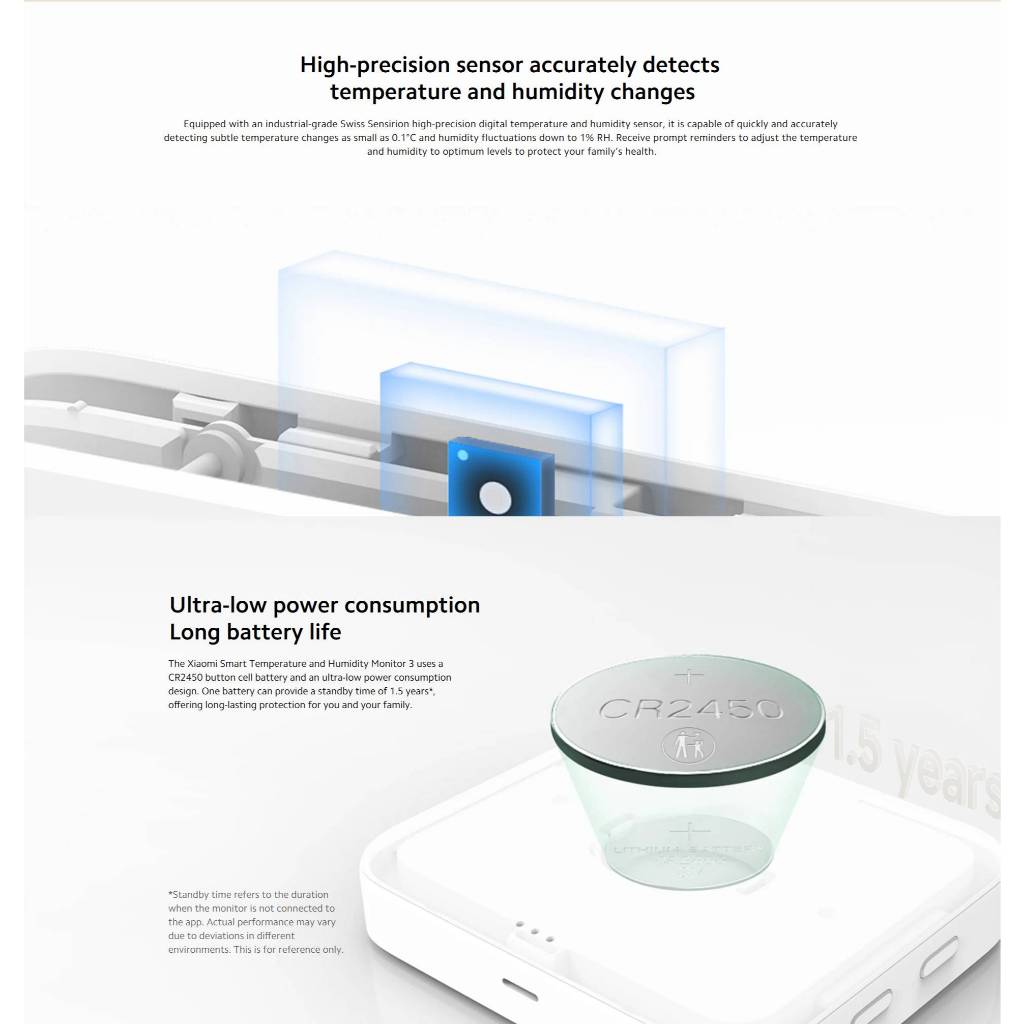 Xiaomi Smart Temperature and Humidity Monitor 3 | High-Precision Sensor | Comfort Level Indicators