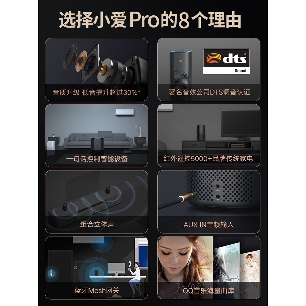 Xiaomi Smart speaker Xiaoai PRO LX06 global version 小米小爱Pro 小愛同學 智能音箱 WiFi Bluetooth 藍牙音箱 Infrared connect voice control Home IR Remote ai robot intelligent sound call appliances universal home Gift 圣诞节礼物 蓝牙wifi通话小艾机器人声控家电红外控制万能遥控音响 (global version )