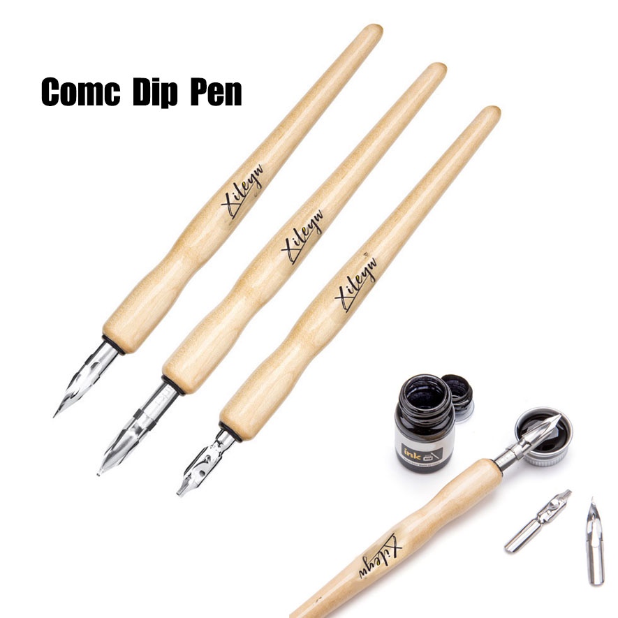 Xileyw [Ready Stock] Comic Dip Pen Set Fountain Pen With Round Student Nib Filling Ink Art Calligraphy Signature Writing Painting Writing WordArt