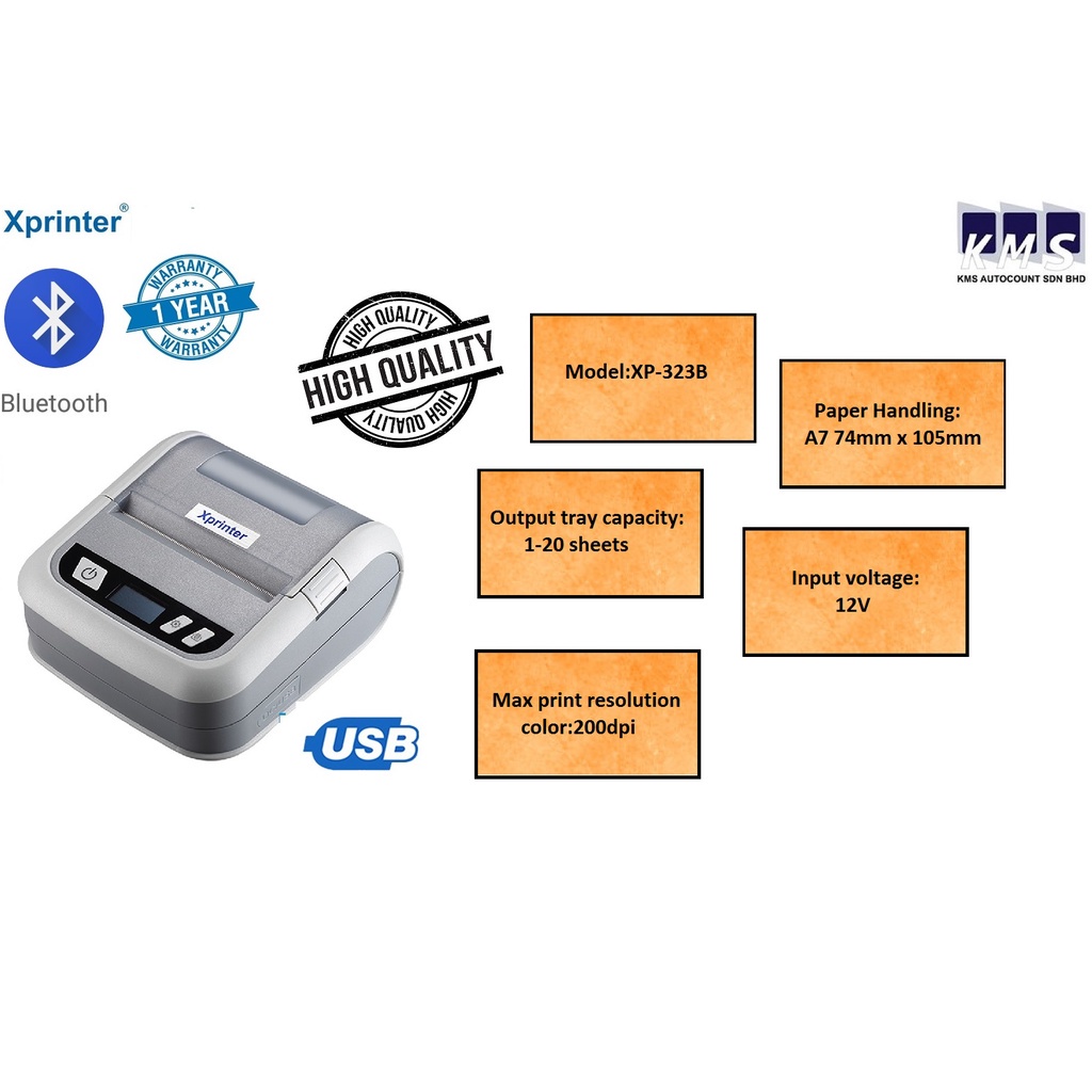 Xprinter XP-323B 20 to 80mm Width Bluetooth Portable Printer Mobile Receipt Label