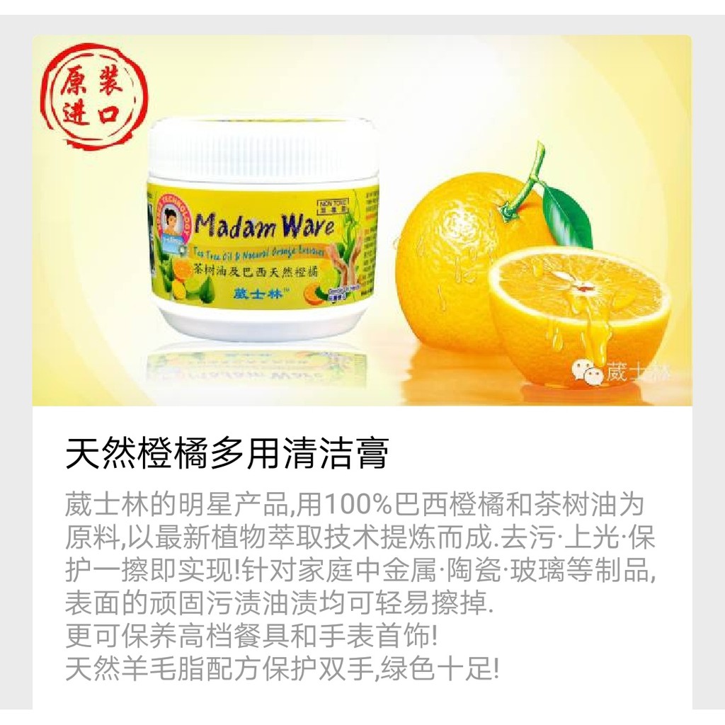 Y-Slimz Madam Ware 300gm (Stainless Steel Cleaner)不銹鋼清潔膏 - Tea Tree Oil