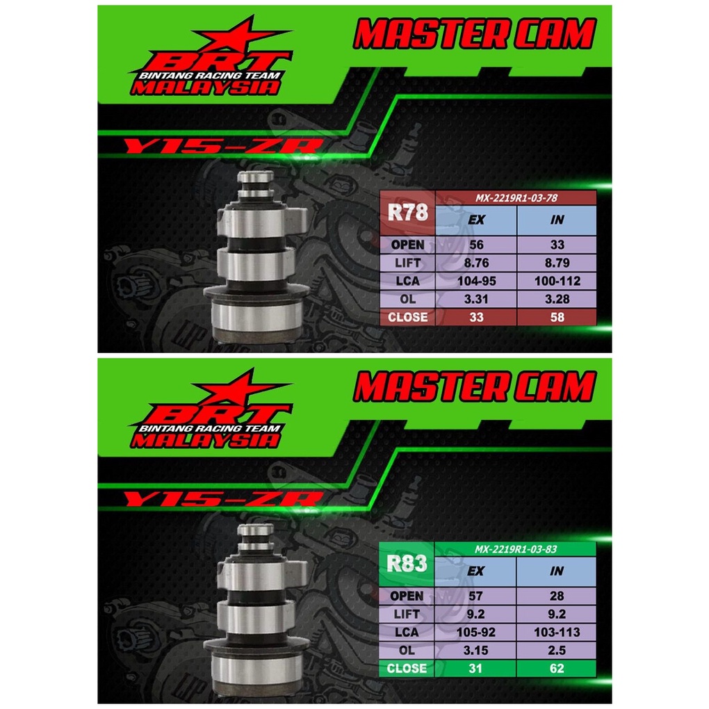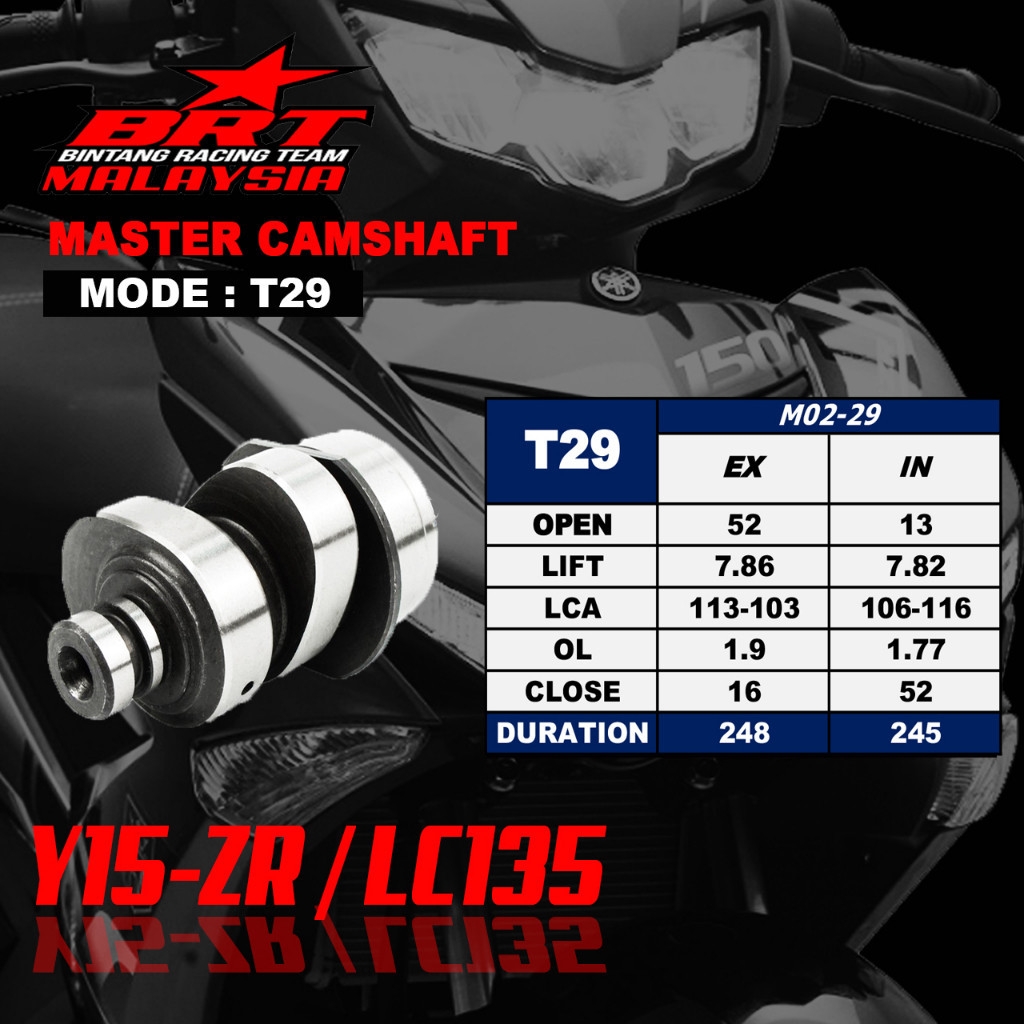 Y15 V1 V2/ LC135 100% ORI BRT RACING CAMSHAFT HIGH CAM MASTER CAM / OPEN RACING CAM