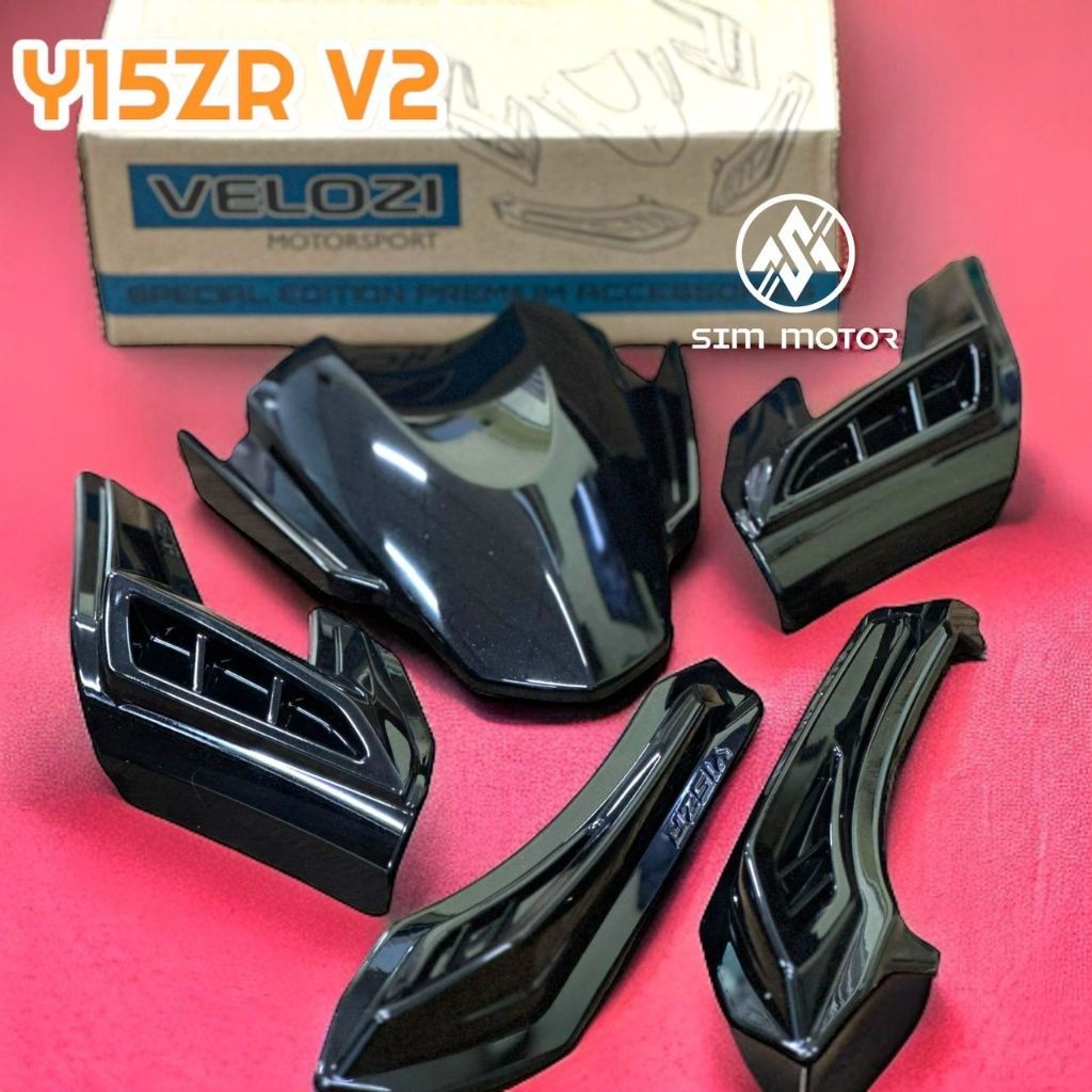 Y15ZR V2 (SPECIAL EDITION) TOP SET COVER (5PCS) METALIC BLACK MATT BLACK VELOZI BATMAN VISOR LED SHILED TAIL LAMP COVER