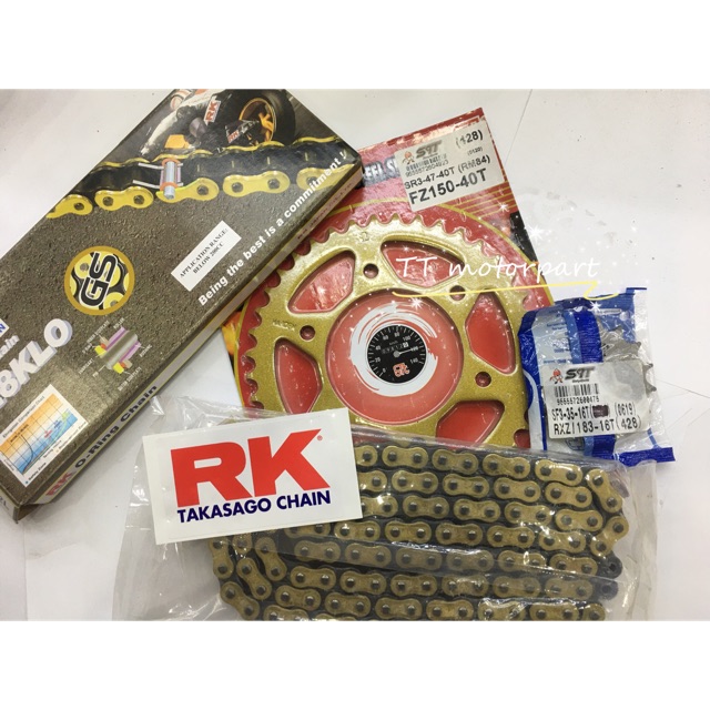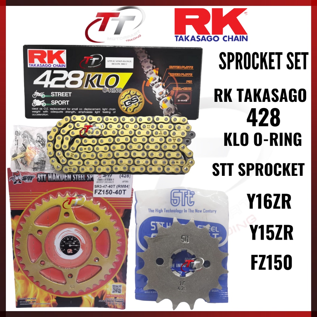 Y15ZR Y16ZR FZ150 RK JAPAN TAKASAGO 428 KLO ORING ERO CHAIN RANTAI GOLD EMAS STT SPROCKET SPOCKET SPOKET SPROKET Y15 Y16